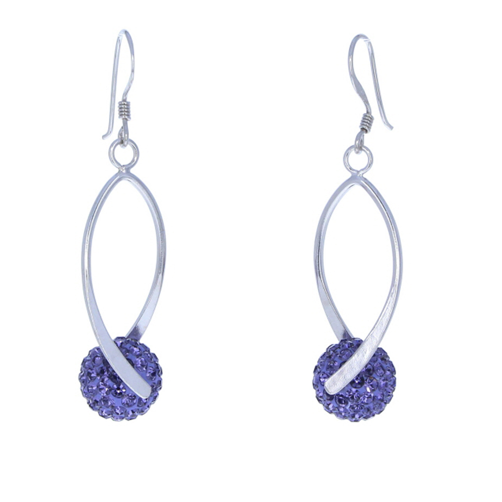 925 Sterling Silver Balls Earrings Created with Tanzanite Brilliant Crystals