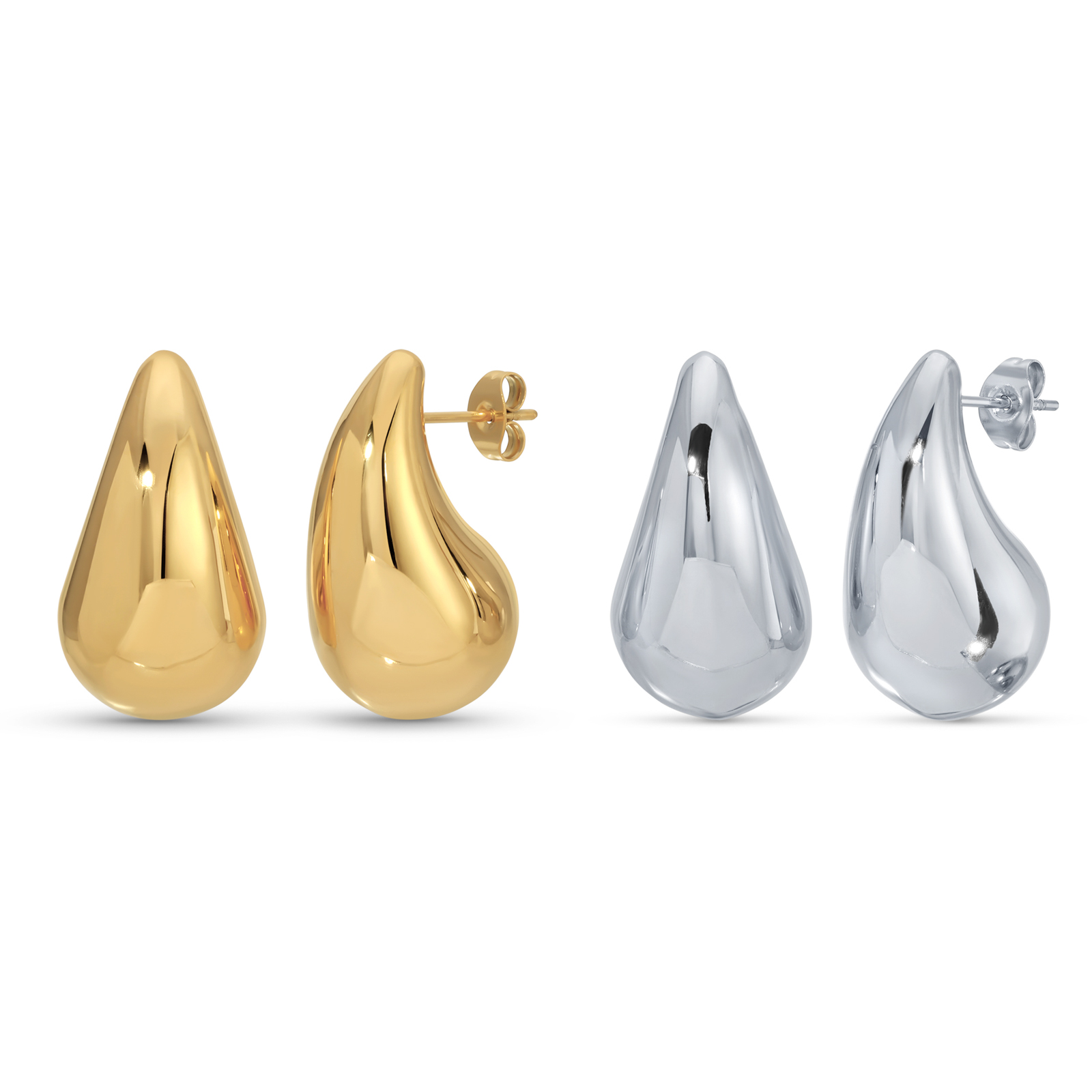 Puff Light Weight High Polish Hoop Earrings-LARGE
