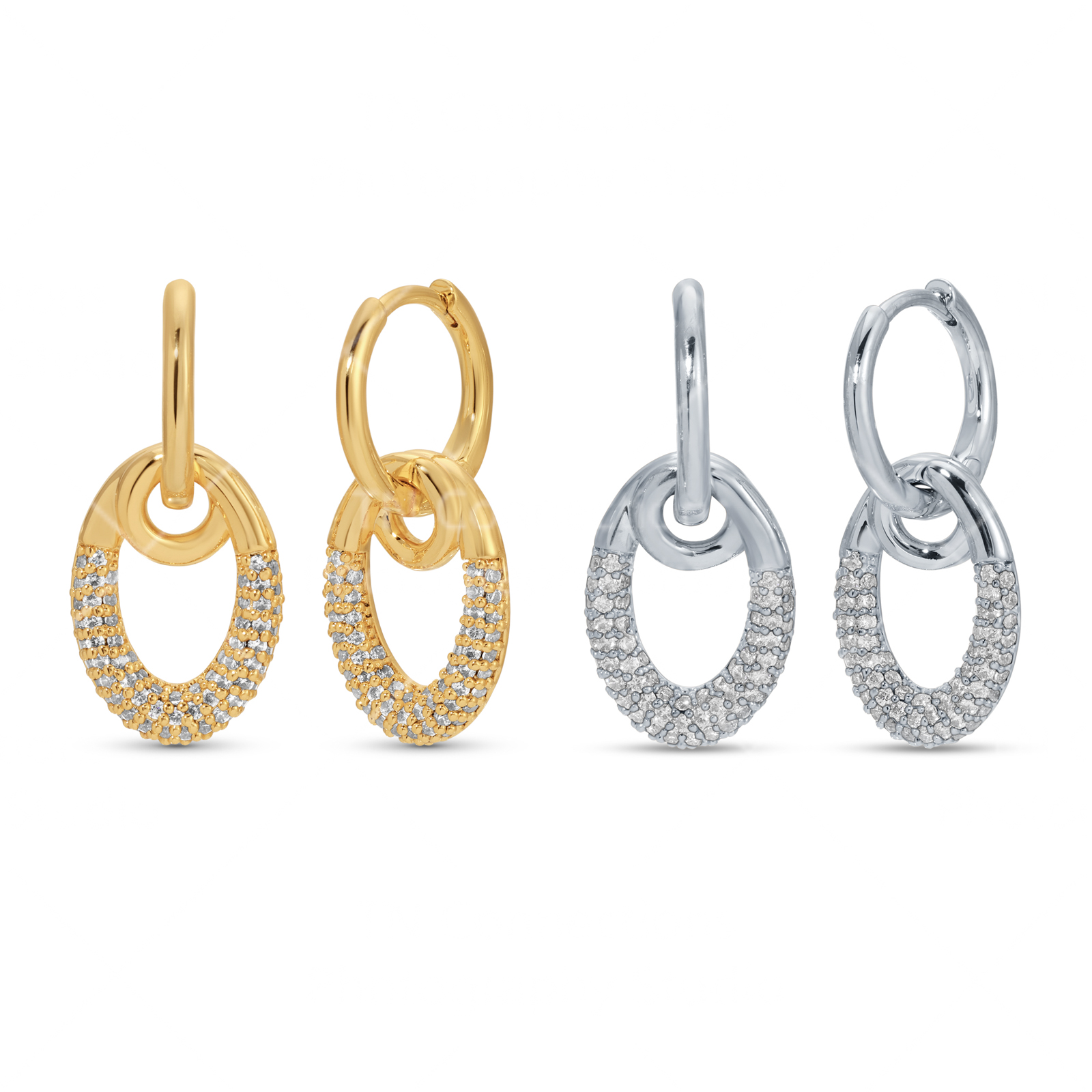 Plated Oval Link Paved Earrings