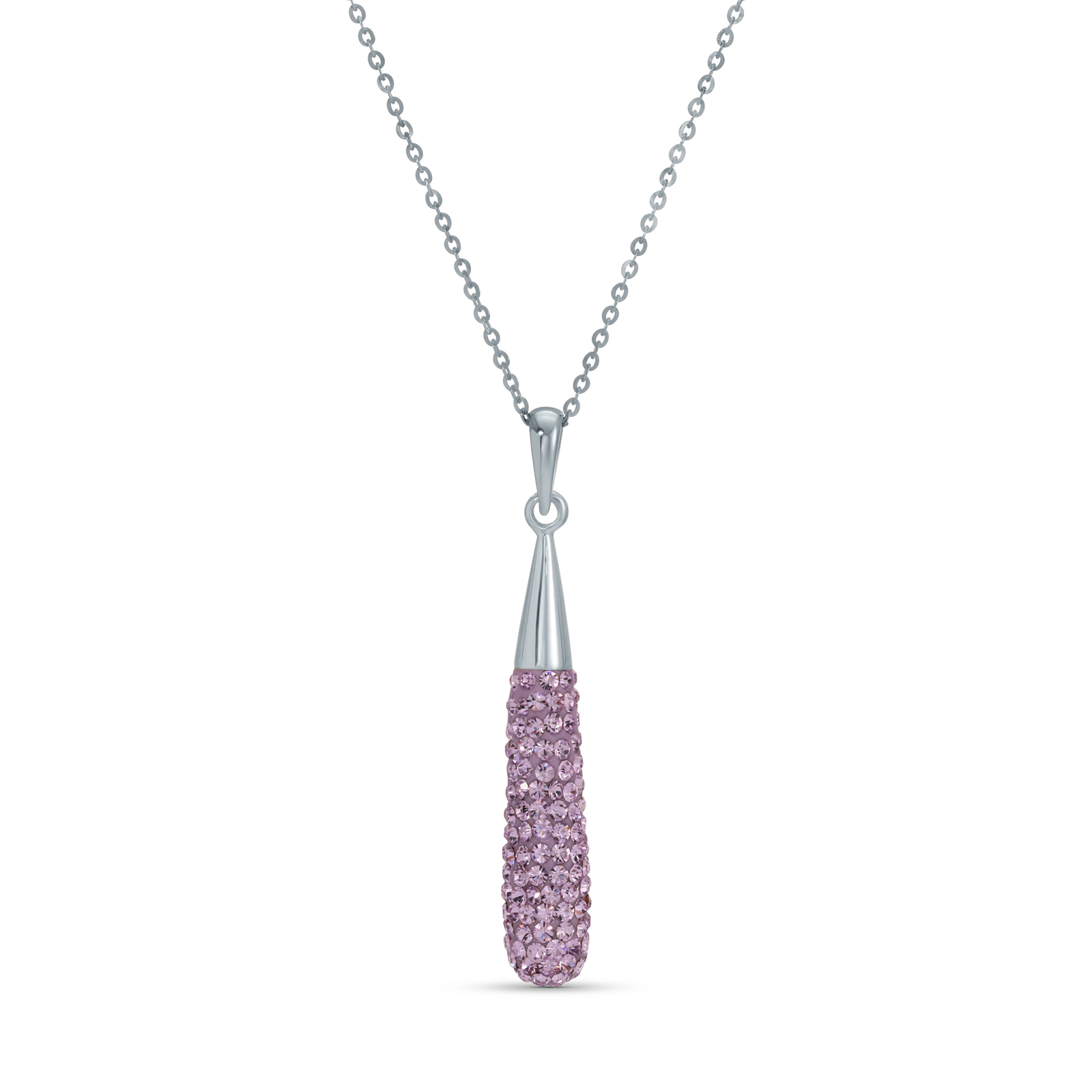 Rhodium Plated BAR Necklace Made With Purple Crystals - 925 Silver