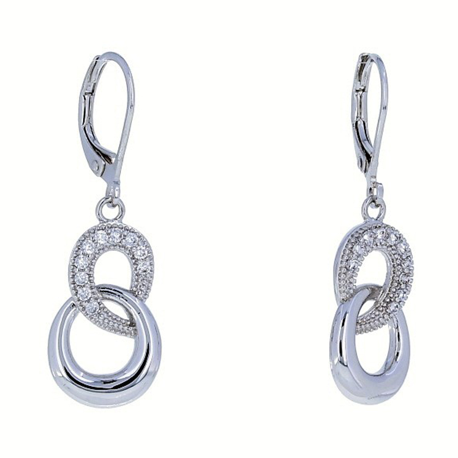 Rhodium Plated DOUBLE CIRCLE Dangle Earrings