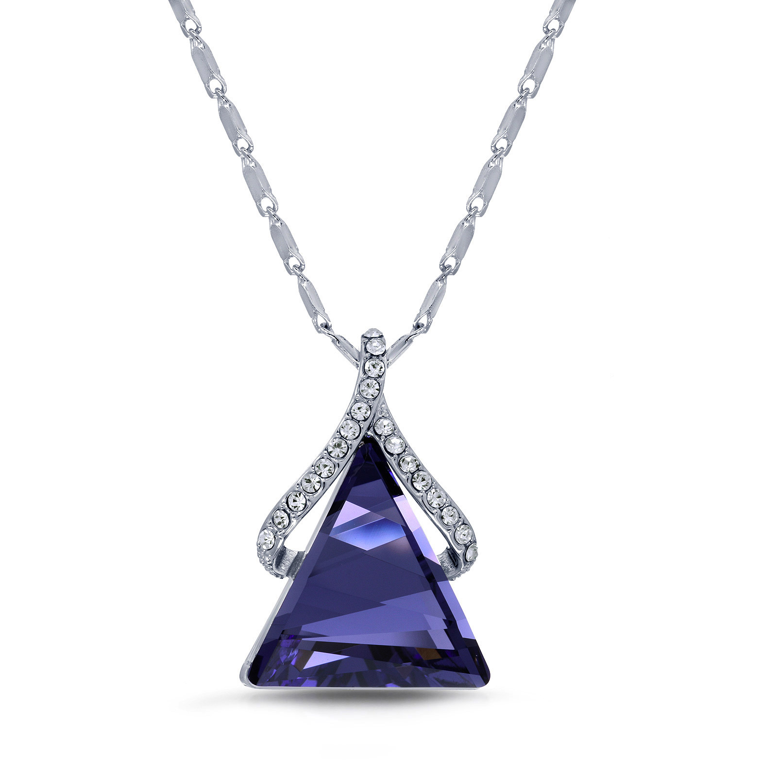 Rhodium Plated Triangle Necklace Pendant created with Brilliant crystals