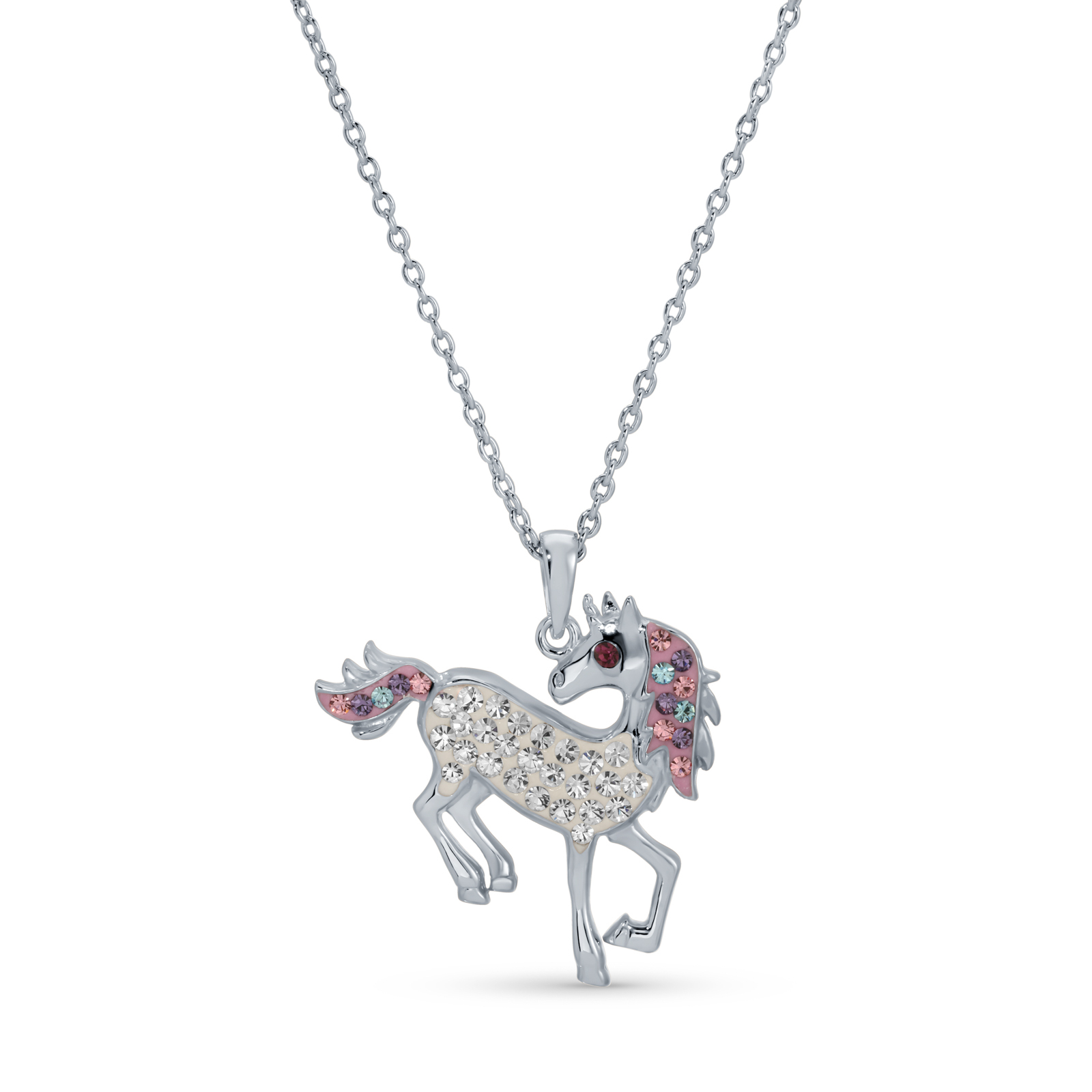 Rhodium Plated Unicorn Necklace Made With Pink Crystals