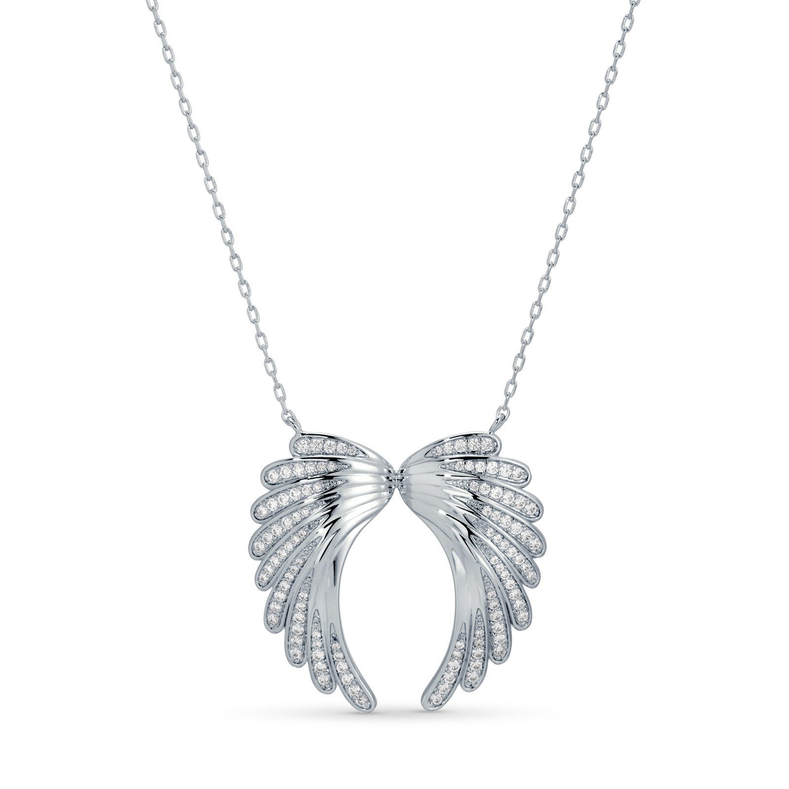 Rhodium Plated Angel Wing Necklace Made With Clear CZ